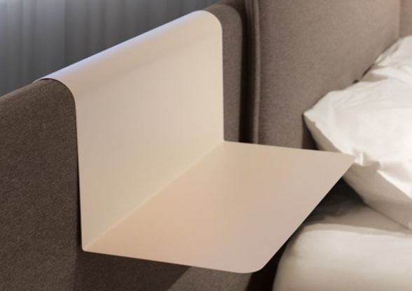 The Nest Bed by Trica Furniture comes in Queen and King size. Available in different fabrics, vinyl and leather colors. Made in Canada