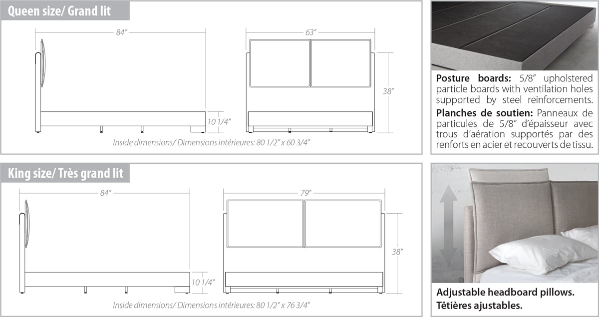 - 2 headboard pillows included that can be adjusted to 3 different heights: 45 1/2”, 48 1/2” and 51 1/2”.