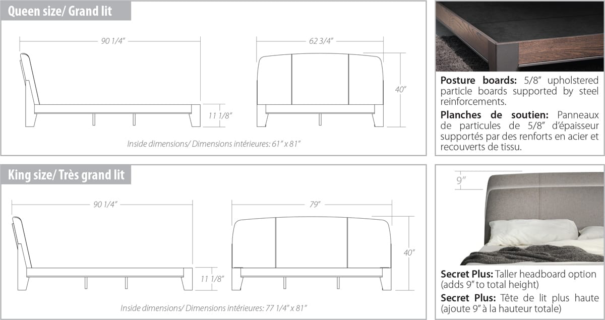 The Dream Bed by Trica Furniture comes in Queen and King size. Available in different fabrics, vinyl and leather colors. Made in Canada