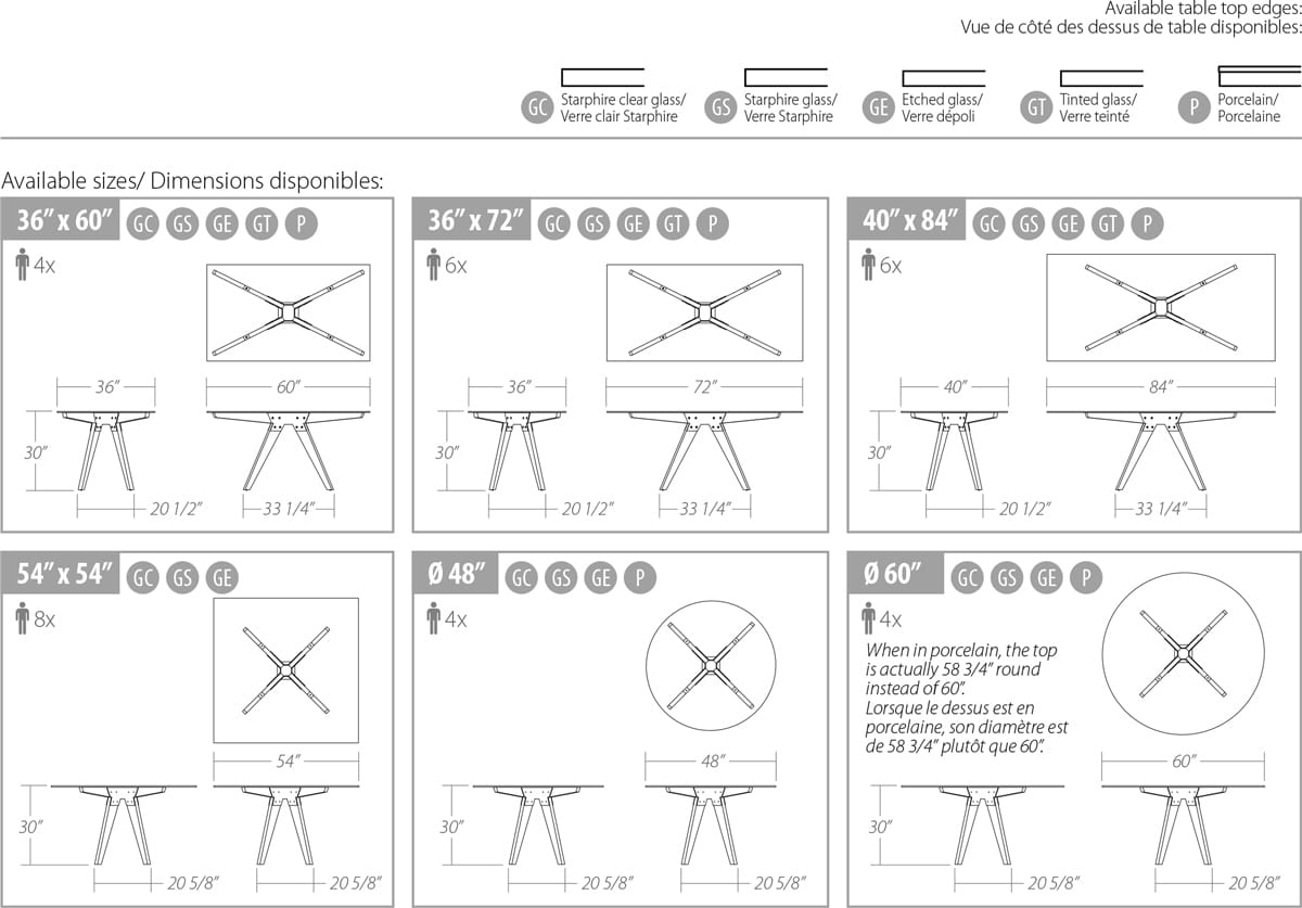 • 6 mm rectangular porcelain top laminated on a 12 mm thick glass.
