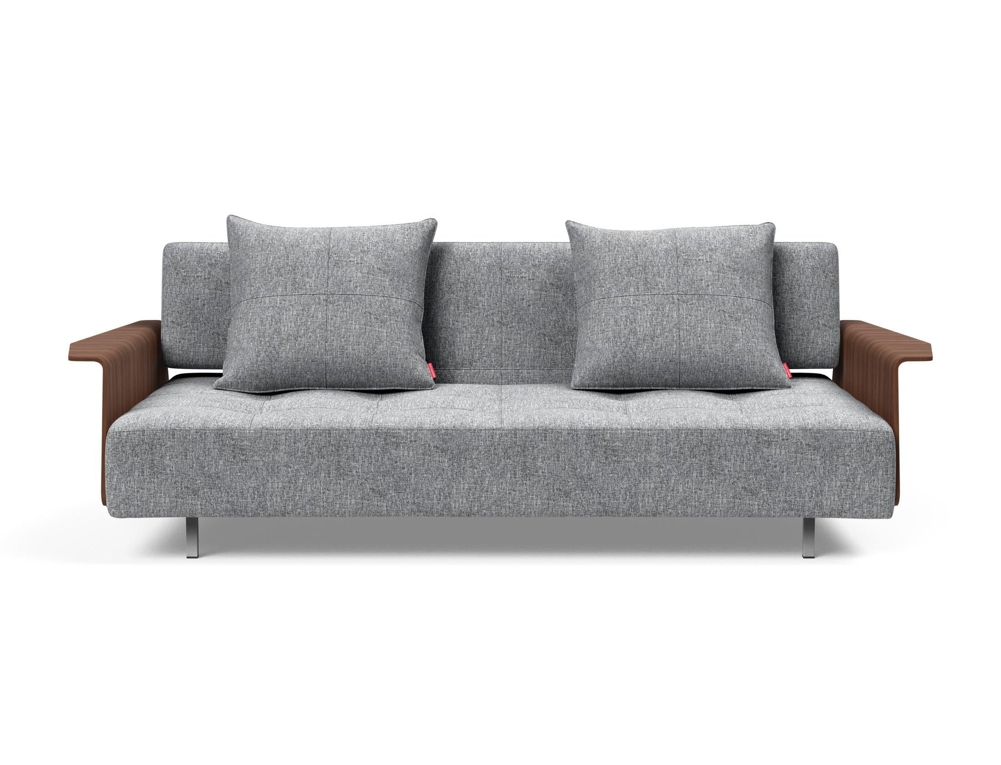 The Long Horn sofa bed meets demands posed by compact and flexible living conditions as it features wheel castors in the back, effectively enabling users to adapt interior settings as well as the three backrest settings ensure that you can sit, lounge and rest comfortably. The durable design with walnut veneer arms and deep seating depth provides an improved lounge effect for three persons seating and two persons resting. The excess pocket spring foundation core encased in high resilience foam ensures pleasant relaxation during the day and night. Grand comfort, modularity and contemporary design in one sofa making it perfect for urban homes.
