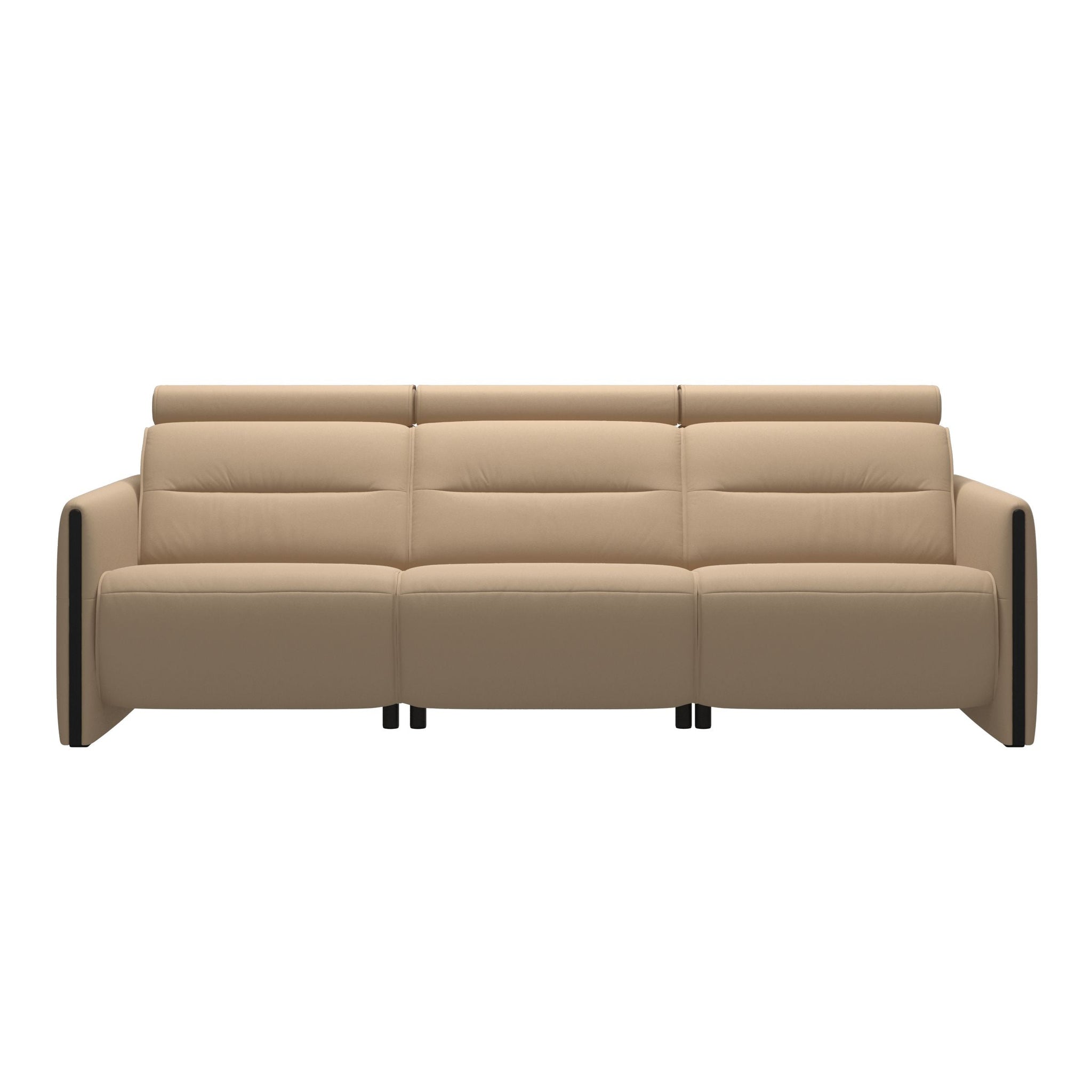 Sleek lines with a modern look give Stressless Emily an embracing appearance. The contemporary design of the soft enveloping cushions invites you to sit down and relax. All seat modules come with an adjustable headrest. Either with fixed seat-back or fitted with motors for personal adjustment of back and leg support. Choose between either steel or wood details on the armrest. The recliners Stressless Tokyo and Stressless View both couple up nicely with the Stressless Emily sofa.