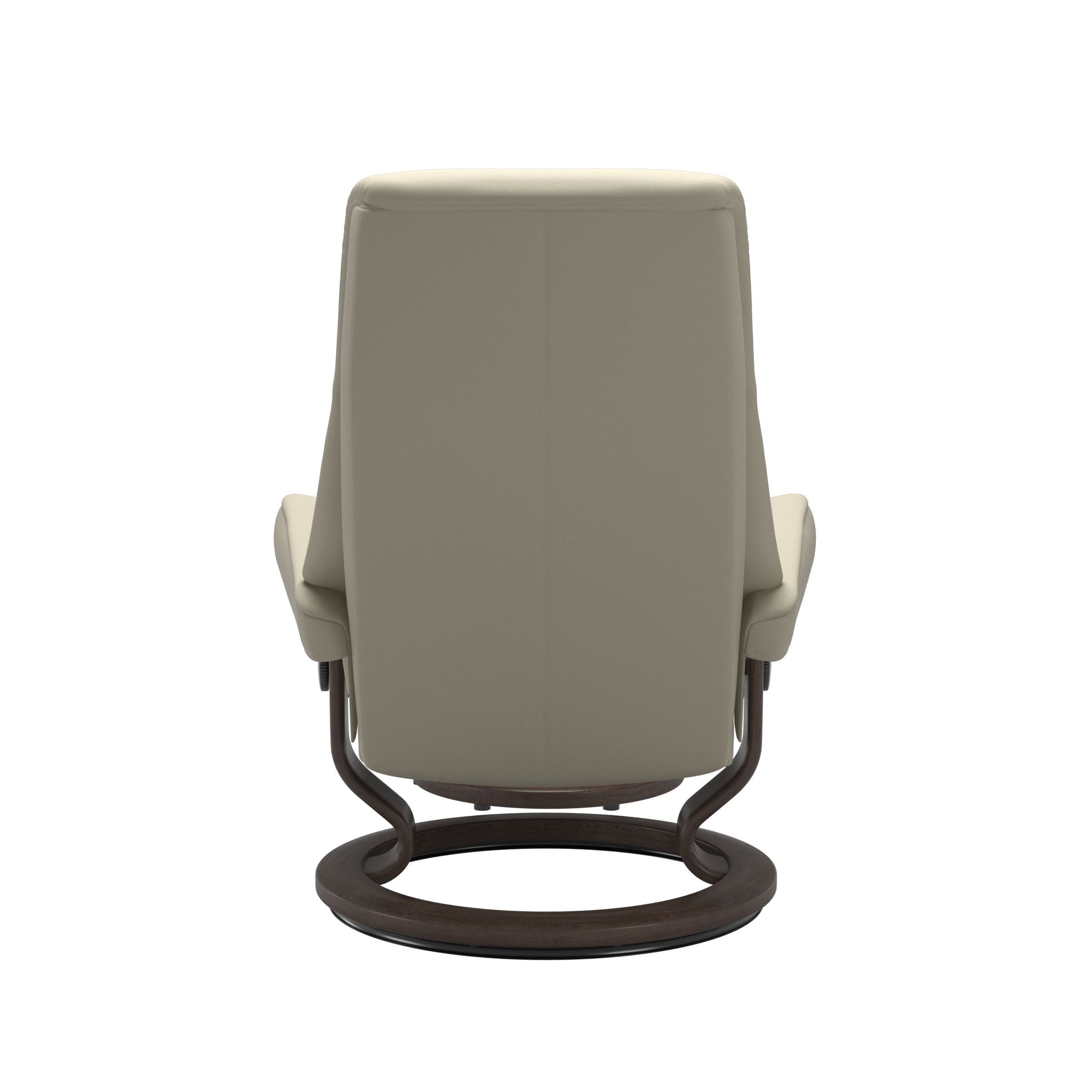 Soft and timeless. The Stressless View has ample cushioning, while retaining a timeless and modern cushion design with sleek contours. Fitted with a longer and slimmer back, this recliner is great for those of us who need some extra length in the back. It also has an elegant and comfortable neck support, which can be adapted to users of various height.